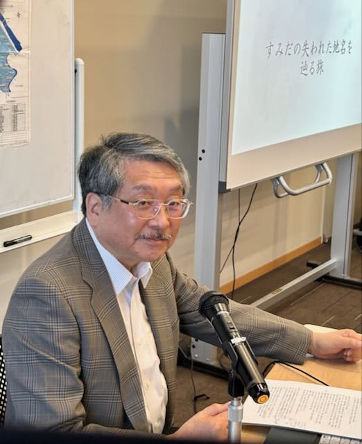 講演の内容は寺島や牛島、向島といった地名の由来や、隅田川の名称が時代とともに変化してきたこと、さらに文学や神話に登場する人物が地名や信仰に影響を与えてきたことなどが、わかりやすく解説されました。地名を知ることで、普段見慣れた街の風景が、少し違った視点で見えてくることを実感する機会となりました。