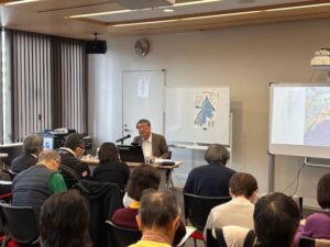 さらに、有原業平、梅若丸、ヤマトタケルと弟橘媛といった文学や神話の登場人物が、この土地の記憶として地名や信仰に影響を与えてきたことにも触れました。地名とは、自然、歴史、人間の営みが幾重にも重なり合って形成されたものです。現在の町並みや災害リスクの背景にも、こうした過去の地形や水の痕跡が色濃く残っています。地名を知ることは、この土地の性格と向き合い、これからを考えるための重要な手がかりになるのです。